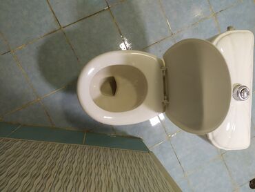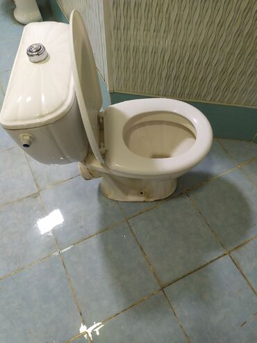 Ağ rəngdə unitaz və ayaqlı çanaq dəsti hamam otaqları üçün uyğundur