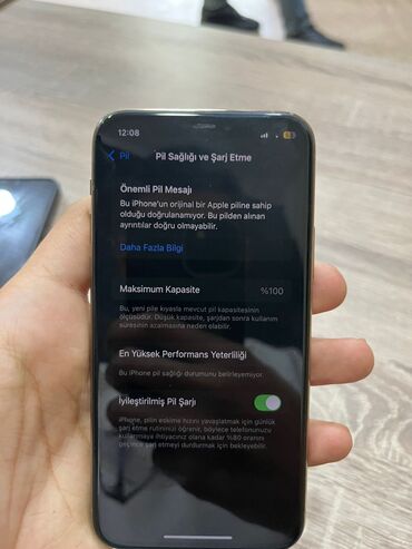- Batareya bölməsi: Maksimum tutum 100% (sistemdə göstərilir); ekranda “Bu iPhone’un orijinal Apple pilinə sahib olduğu doğrulanamıyor” bildirişi mövcuddur
