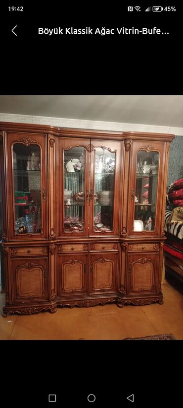Şüşəli dolab vitriniBöyük klassik ağac vitrin-bufet