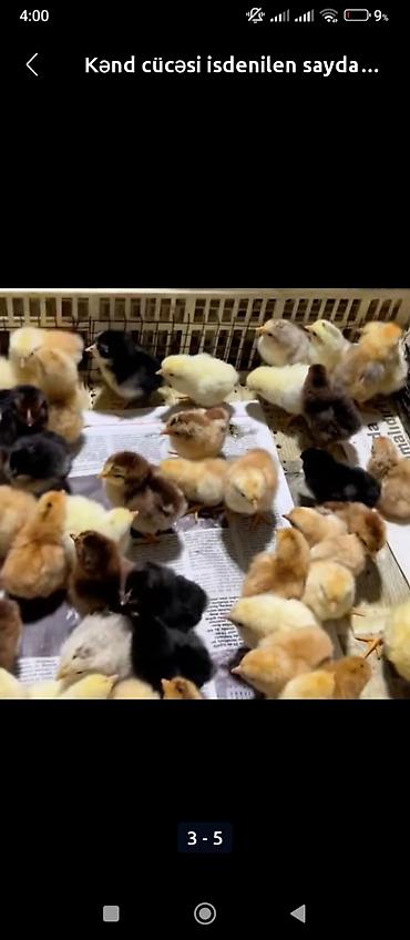 Məhsul: Kənd cücələri (istənilən sayda) - Cins: Qarışıq yerli/kənd cinsləri - Rənglər: Sarı, qara, qəhvəyi və qarışıqlar - Yaş: Yeni çıxmış cücələr - İstifadə məqsədi: Yumurta və ətlik yetişdirmə,...