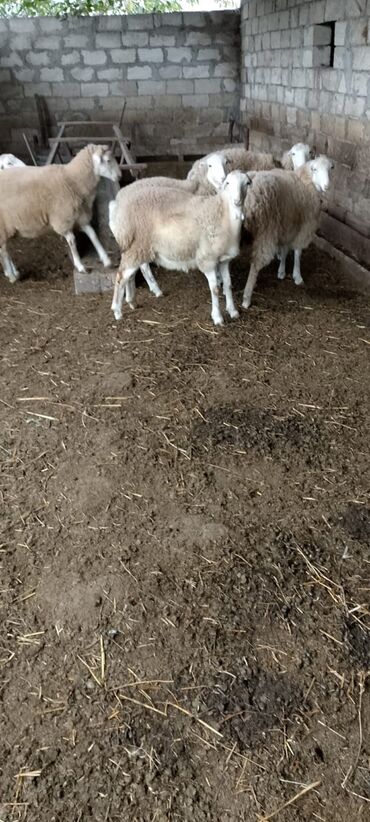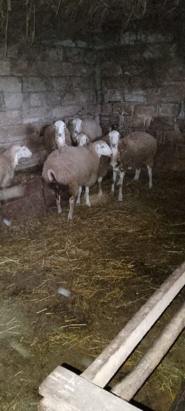 Satışda qoyun sürüsü - Növ: ətlik/yunlu yerli damazlıq tipli qoyunlar - Şəkillərdə 6–8 başdan ibarət eyni yaş qrupunda, ağ başlı, açıq-bej rəngli yunlu heyvanlar görünür - Bədən quruluşu dolğun, a...
