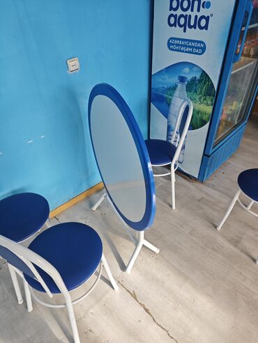 - Masa: dəyirmi formalı, metal konstruksiyalı, üst səth hamar və asan təmizlənən. Qatlanan/şaquli saxlanıla bilən ayaq sistemi sayəsində az yer tutur.