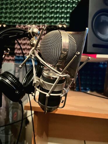 - Kondensator mikrofonu pop-filter və boom stend ilə, qulaqcıq üçün tutacaq.