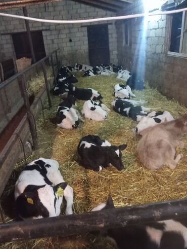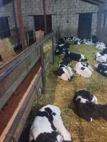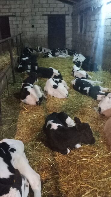 Satış: Qara-ağ ləkəli buzovlar (Holştayn tipli) - Şəkillərdə görünən buzovlar qapalı fermada saxlanılır, ayrı yemləmə koridoru və yem qabları mövcuddur. - Qulaq birkaları ilə qeydiyyatlıdır. - Buz...