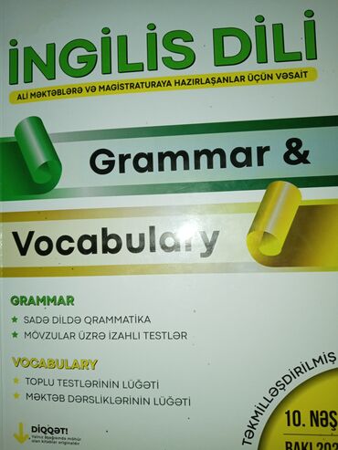 Məhsul: “İngilis Dili – Grammar & Vocabulary” (Nərgiz R. Nəcəf), Təkmilləşdirilmiş, 10-cu nəşr, Bakı 2024 Xüsusiyyətlər: - Ali məktəblərə və magistraturaya hazırlaşanlar üçün vəsait - Grammar bölm...