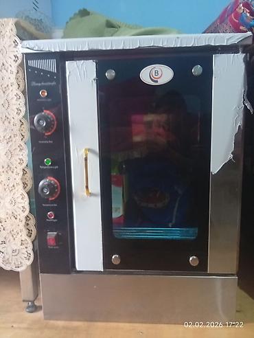 - Konveksiya sobası (üfiqi rəfli): Ön şüşə qapı, içəridə bir neçə çıxarıla bilən list/raf, aşağıda mexaniki idarəetmə düymələri (temperatur, zaman və işə salma).