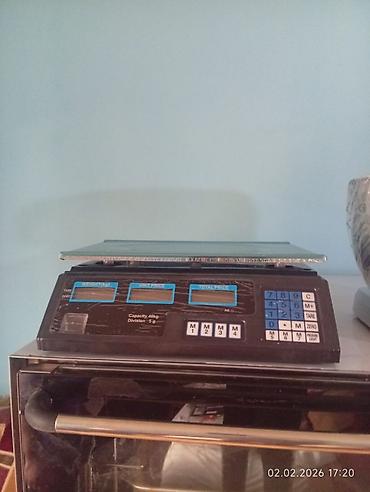 - Elektron tərəzi: 40 kq-a qədər tutum, 5 q dəqiqlik. Üç ekranlı (çəki, vahid qiymət, toplam məbləğ), TARE/ZERO funksiyaları, ədəd düymələri və yaddaş (M1–M4) qısayolları.