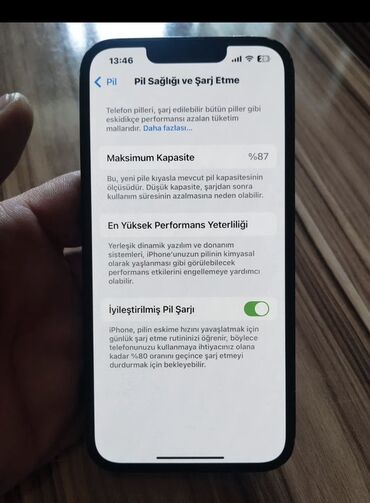 Tund goy iPhone 13. Cihazın batareya sağlamlığı 87% təşkil edir ki, bu da onun gündəlik istifadə üçün uyğun olduğunu göstərir. Telefon zavoddur,acilmayib,Deyiwen detal parca yoxdur.True tone,Face id aktivdir.karopkasi USB sunuru var.siniq qiriq cat yoxdur.Ekranda Ve korpusda ciziqlar var,oda kaburosuz istifade olundugu ucundur.Hec bir problemi yoxdur.qiymet sonudur.Satmaga Telesmirem,Awagi qiymete gore narahat etmeyin.Yalniz whatsapda ve burada Yaza bilersiniz.