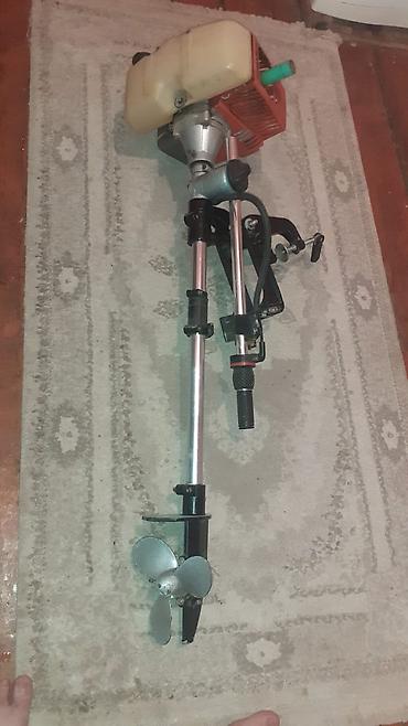 Bənzinlə işləyən kiçik qayıq mühərriki - Yanacaq: benzin (üst hissədə iri plastik yanacaq çəni) - İdarəetmə: qaz tənzimləyicili qol dəstəyi və kabel ötürücü - Qoşulma: qayığın bortuna bərkidilən m...