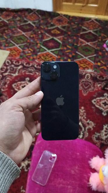 Apple iPhone 15 – qara rəng Xüsusiyyətlər: - Ekran: 6.1" Super Retina XDR OLED, Dynamic Island kəsiyi - Şüşə və alüminium korpus, USB‑C portu - Prosessor: A16 Bionic çipi, 5 nüvəli GPU - Yaddaş: (...
