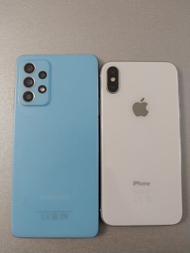 Məhsul: 2 ədəd smartfon – Apple iPhone X (ağ) və Samsung Galaxy A52 (açıq mavi)
