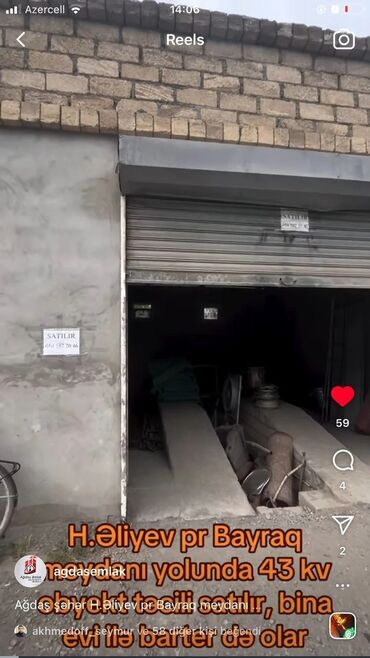 Ağdaş şəhəri, H.Əliyev prospekti – Bayraq meydanına gedən yolun üstündə yerləşən 43 kv.m obyekt. Xüsusiyyətlər: - Sahə: 43 kv.m - Geniş girişli metal jalüz qapı - Hündür tavan, möhkəm kərpic divar...
