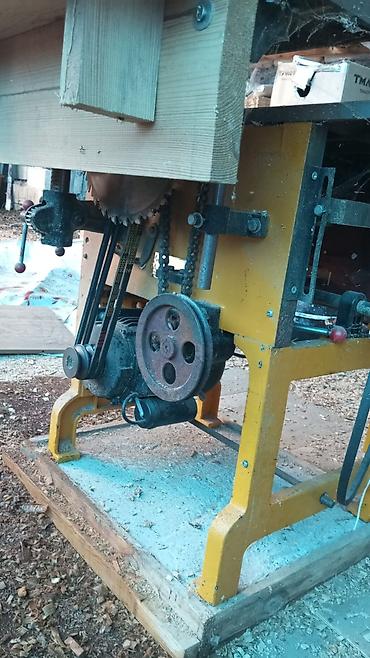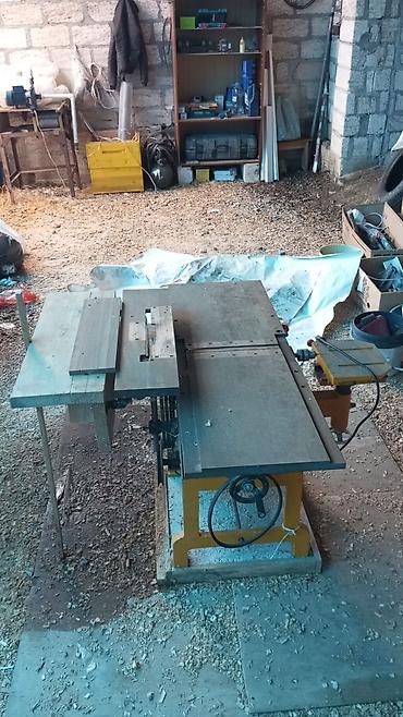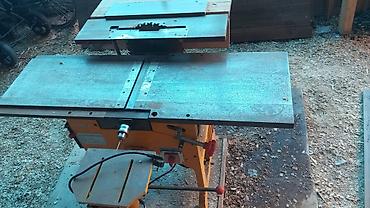 - Funksiyalar: dairəvi mişar, reysmus/kalibrovka (planlama), frezə və qazma modulu. Yan hissədə patronlu qazma/frezə mili, üst hissədə geniş tökmə dəmir iş masası, aşağıda reysmus qovşağı və hündürlüyün əl çarxı ilə tənzimləmə.