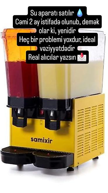 Şəkildəki mətndən: “Su aparatı satılır. Cəmi 2 ay istifadə olunub, demək olar ki, yenidir. Heç bir problemi yoxdur, ideal vəziyyətdədir. Real alıcılar yazsın.”