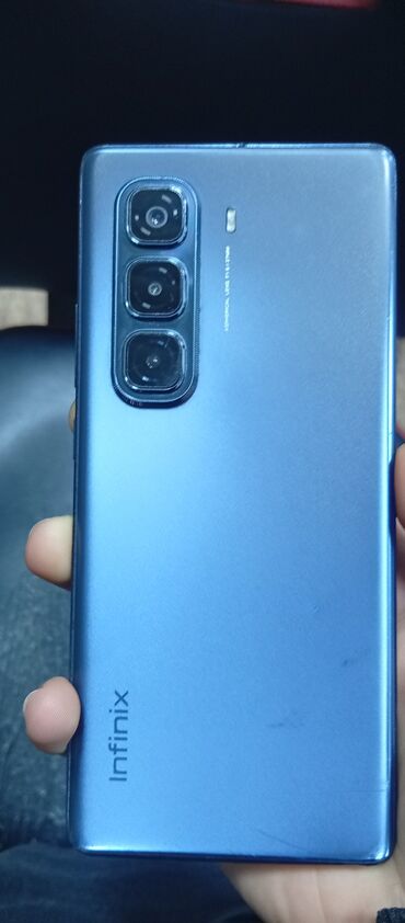Infinix smartfon - Marka/model: Infinix (arka qapaqda loqo), üçlü arxa kamera moduluna və LED fləşə malikdir - Ekran: kənarlara doğru əyimli böyük tam ekran, mərkəzə yerləşdirilmiş ön kamera deşiy...