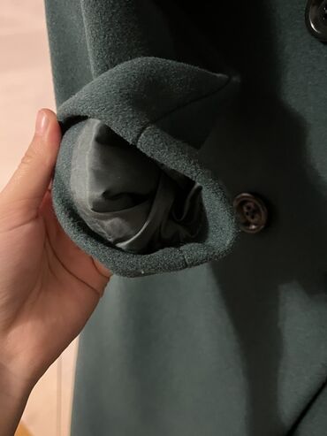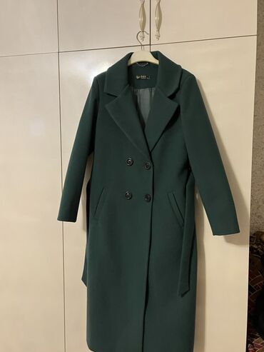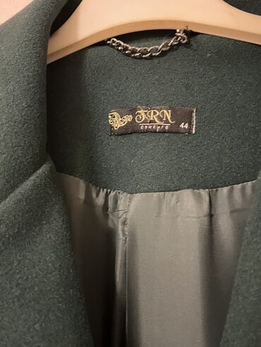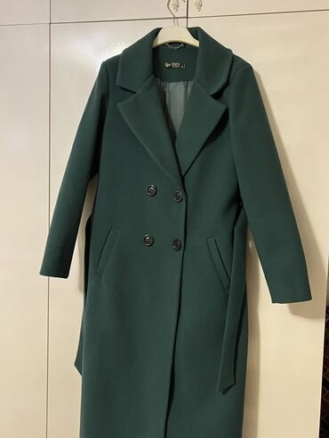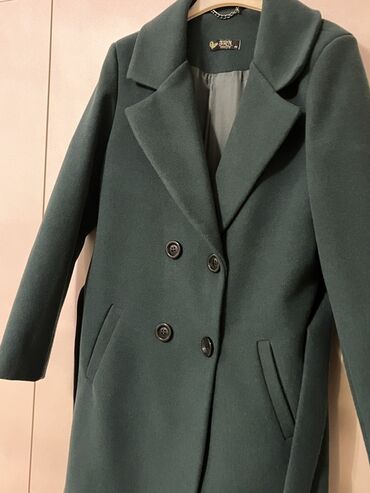 Qadın palto - Rəng: yaşıl - Ölçü: 36 (etiketdə göstərilib) - Model: ikiqat düyməli, qolsuz deyil, uzunqol; ön hissədə iki ədəd dekorativ/örtülü ciblər - Yaxa: stend yaxa (yüksək) - Uzunluq: dizə y...