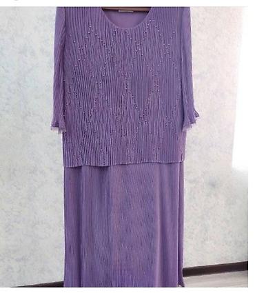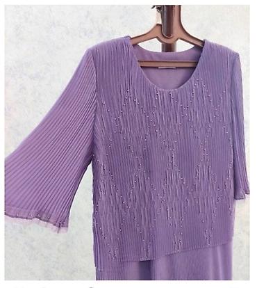 Bənövşəyi rəngdə zərif qadın dəsti – pliseli parça və incə bəzək detalları ilə.