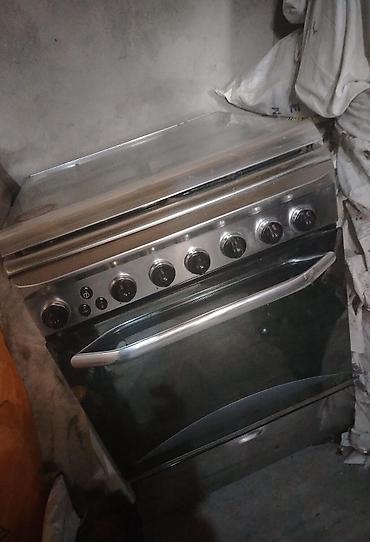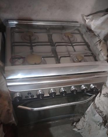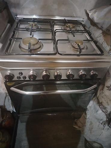 Qaz plitəsi və soba Xirdalanda - 4 gözlü qaz plitəsi: müxtəlif ölçülü brülörlər, çıxarılan dəmir barmaqlıqlar - Ön paneldə ayrı-ayrı mexaniki idarəetmə çarxları (4 plitə üçün + 1 soba üçün) - Aşağ...