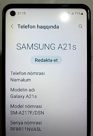 samsung a 21s satilir tecilii 100 azn