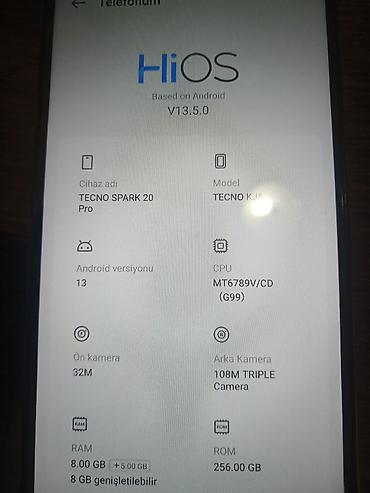- Sistem: HiOS 13.5 (Android 13 əsaslı)