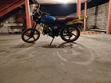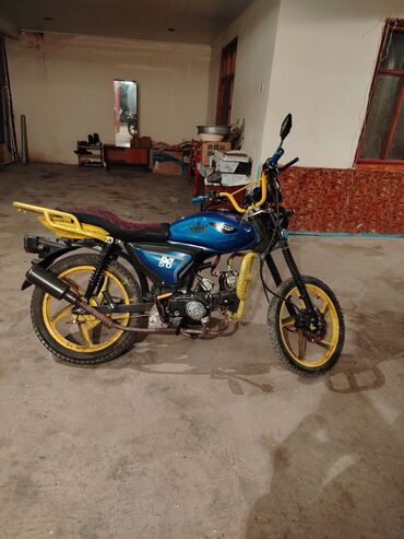 Tufan M50 motosiklet - Rəng: mavi gövdə, sarı lehimli disklər - Həcm: 50 cc (M50) - Mühərrik: karbüratorlu, hava ilə soyutma - Ötürmə: mexaniki, ayaqla sürət dəyişdirici - İdarəetmə: klassik iki d...