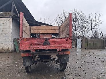 Üçtəkərli yüklü moto-transport - Tip: yüklərin daşınması üçün çevrilmiş üçtəkərli motosiklet (arxa tərəfi taxta bortlu yük platforması) - Gövdə: metal karkas + qalın taxta bortlar; arxa bort aşağı...