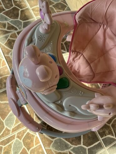 Uşaq gəzdiricisi (walker) – çəhrayı/ağ rəngdə. Xüsusiyyətlər: - Rahat yumşaq oturacaq, sökülüb yuyula bilən parça. - Ön paneldə cizgi şəklində fiqur və işıqlı musiqili modul. - İki ədəd rəngli çiç...