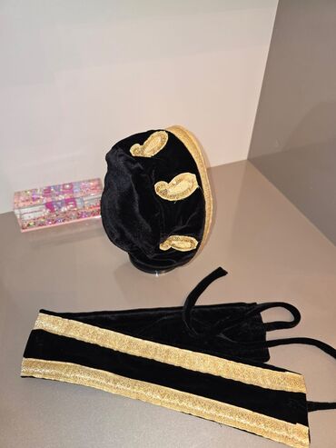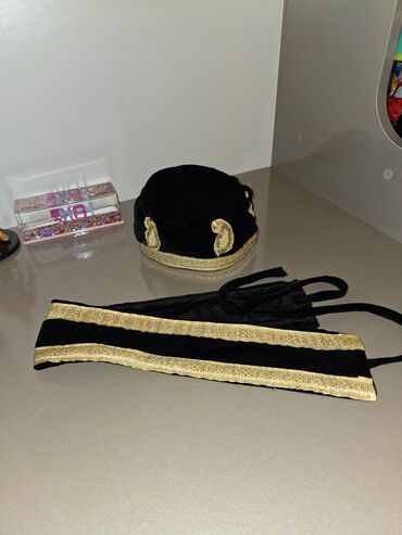 • Qara məxmər papaq, qızılı buta naxışları və haşiyə ilə