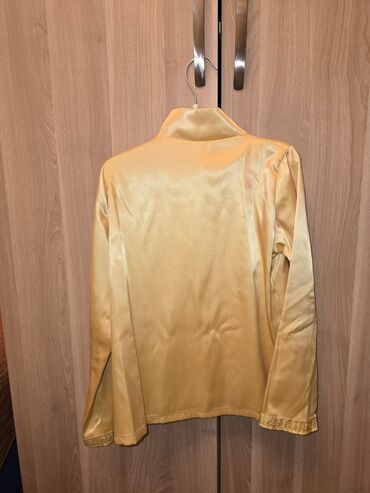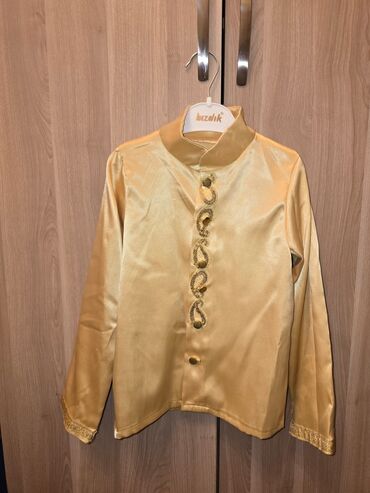 • Qızılı atlas köynək, ön hissədə qızılı düymələr və naxış elementləri