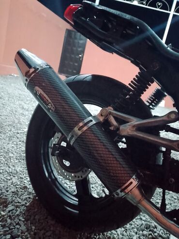 Sport-naked üslubunda KEE… yazılı kuplinqli motosiklet Texniki və dizayn xüsusiyyətləri: - Naked/street dizaynı, aqressiv far bloklu ön panel - Ön tərəfdə tərs (USD) qızılı amortizatorlar - Disk ə...