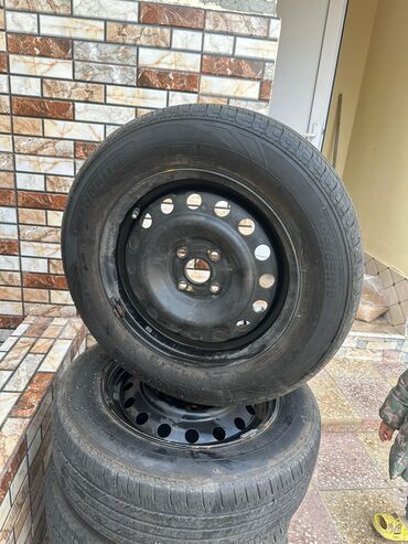 - Komplekt: 4 ədəd şin + 4 ədəd 15” polad disk (çoxlu ventilyasiya dəlikli klassik “steel wheel”)