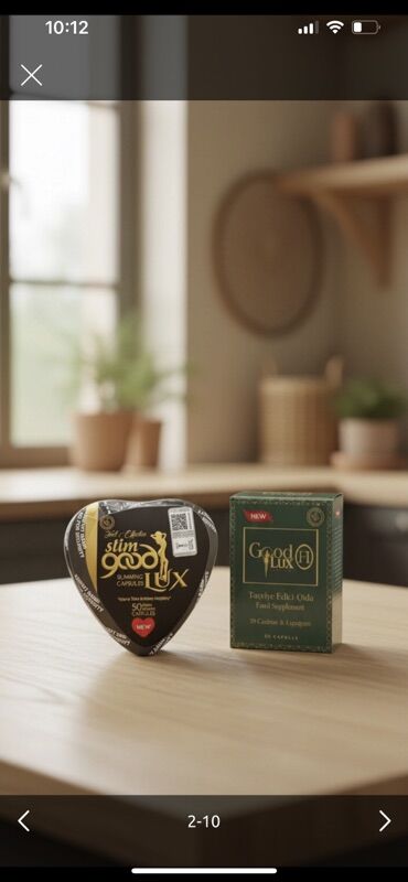 - Good Lux Slimming Capsules – ürək formalı metal qutuda. Qutuda 30 kapsul. Etiketdə “Fast Effective Slimming Capsules”, “More Slim & More Healthy” qeyd olunub.