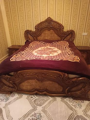 Islek vezıyyetdedır Klassik üslubda tam yataq otağı dəsti - Material: massiv ağac və MDF kombinasiya, qoz rəngində - Üslub: barokko/klassik, zəngin oyma dekor və relyef detallar - Dəst tərkibi: ...