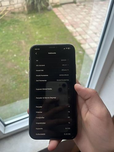Apple iPhone 11 – 64 GB - Model: iPhone 11 (Model nömrəsi: MHDA3RM/A) - İOS versiyası: 16.2.1 (şəkildə göstərilən “iOS Sürümü 26.2.1” sistem dilinə bağlı olaraq 16.2.1-dir) - Yaddaş: 64 GB - Rəng:...