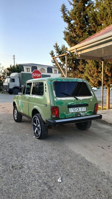 LADA Niva (VAZ 2121) 4x4, yaşıl rəngdə, 3 qapılı SUV.