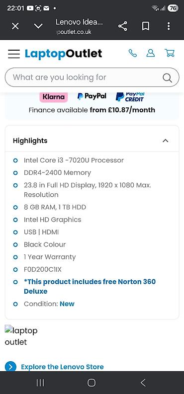 Lenovo IdeaCentre AIO – 23.8" hər şey bir kamputerde Xüsusiyyətlər: -