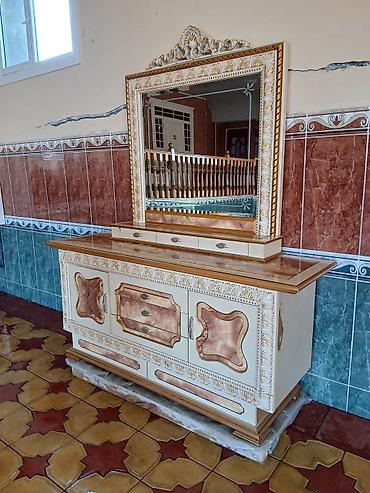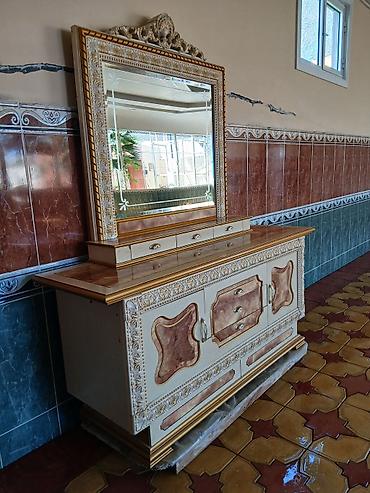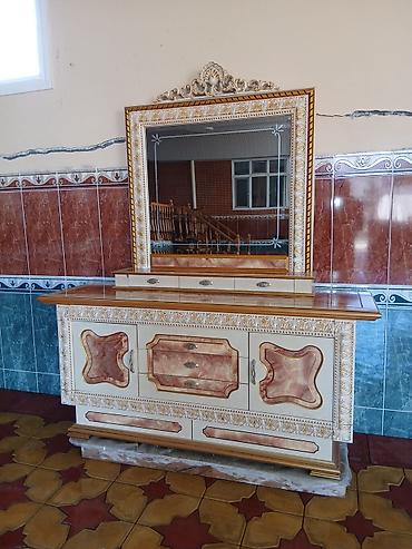Təzədir cox işlənməyib. Yalniz real alicilar narahat etsin qiymətdə cuzi endirim olunacaq. Klassik üslubda böyük güzgülü konsol/dresser - Rəng: ağ krem tonlarında, qızılı dekorativ naxış və haşiyəl...