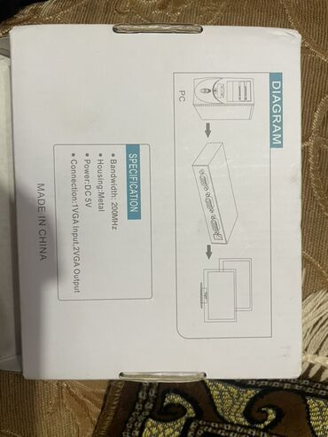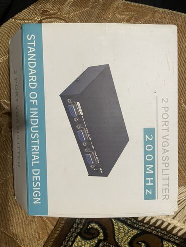 - Qoşulma sxemi: PC → splitter → iki ekran (qutu üzərində diaqram mövcuddur)