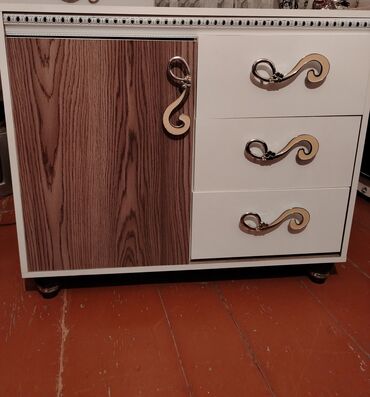 Təzədir. az ișlənib. təcili satılır. Bu, ağ və boz rənglərdə olan, qızılı qulpları ilə tamamlanmış taxta bir tumbadır. O, dörd qapılı əsas hissədən və üstündə iki siyirtməli əlavə hissədən ibarətdi...
