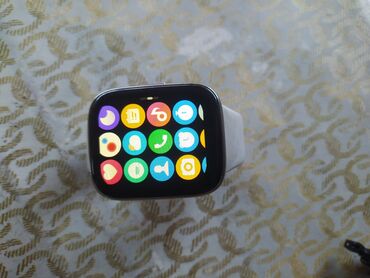 Ağıllı saat – kvadrat ekranlı, toxunma idarəetməsi. Ağ/südlü rəngli silikon qayışlı.