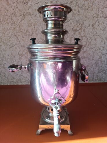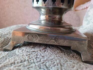 - Material: cilalanmış metal (nikellənmiş/polad korpus), ornamentli musluk və klassik dördayaqlı baza