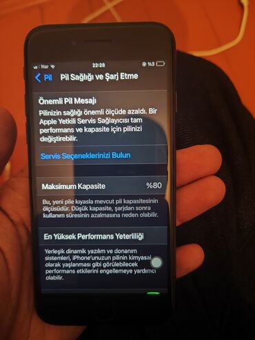 - Batareya sağlamlığı: 80% (ekranda “Önemli Pil Mesajı” bildirimi görünür)