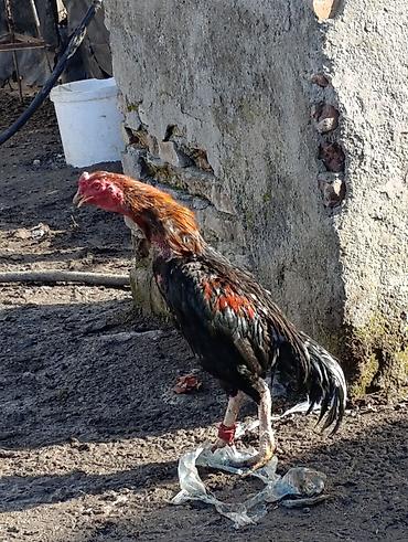 Cinsi: Qırmızı-boz rəng çalarlarında döyüş tipli xoruz Xüsusiyyətlər: - Uzun, möhkəm bədən quruluşu, hündür ayaqlar - Geniş sinə, güclü boyun, sərt lələk quruluşu - Canlı qırmızı ibik və sa...