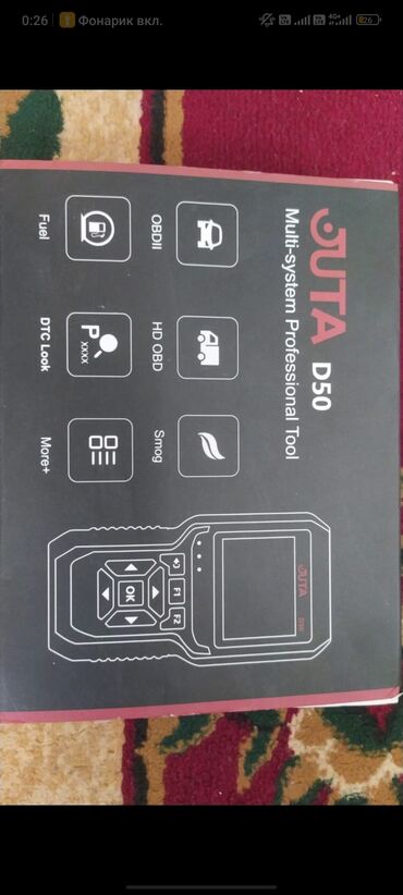 80AZN- JUTA D50 Multi-system Professional Tool – OBDII/HD OBD diaqnostika skaneri. Funksiyalar: OBDII tam oxu/silmə, DTC Lookup, smog readiness, yanacaqla bağlı göstəricilər, ağırtexnika üçün HD OBD menyusu, əlavə servis menyuları.