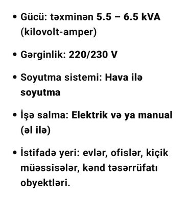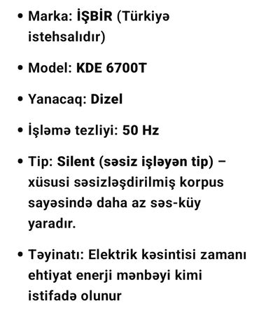 Alis var. Max 12 kva (10 kva) bagli kabin, dizel, Turkiye istehsali genpover generator. Generator az istifade olunub. Generator nol fazadir avtomatikdir. isiqlar kesildikde generator avtomatik ise...