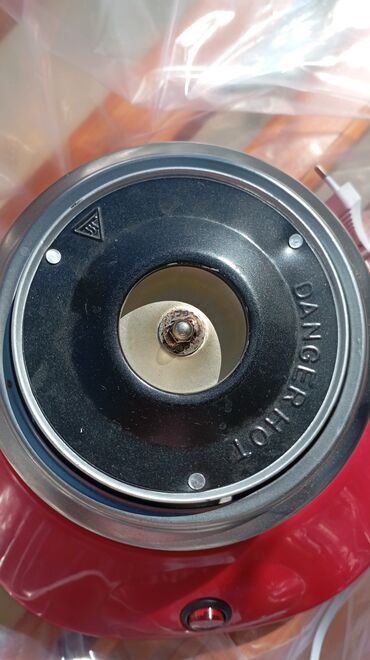 - Mərkəzi metal isitmə bloku və şəkər konteyneri; üzərində “DANGER HOT” xəbərdarlığı