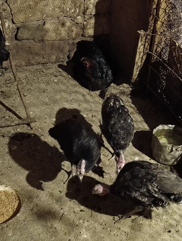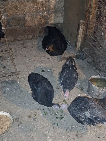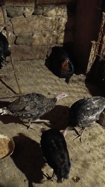 - Şəkillərdə qara-boz rəngli, qismən ləkəli lələkləri olan bir neçə gənc hinduşka görünür.