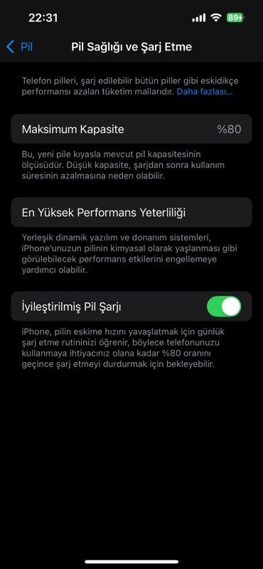 - “İyileştirilmiş Pil Şarjı” funksiyası aktivdir