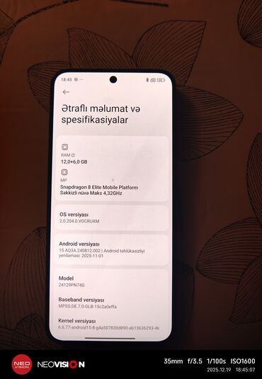- Android versiyası: 15 (təhlükəsizlik yenilənməsi: 2025-11-01)