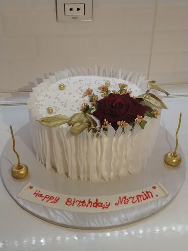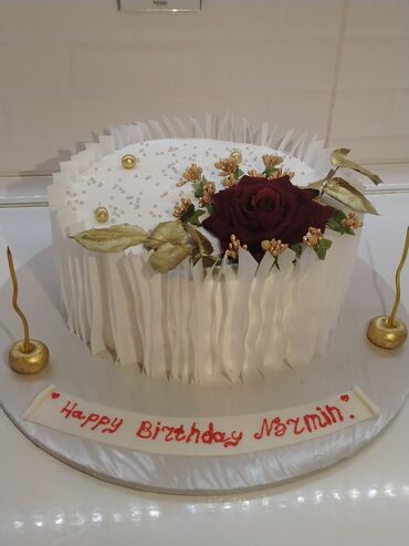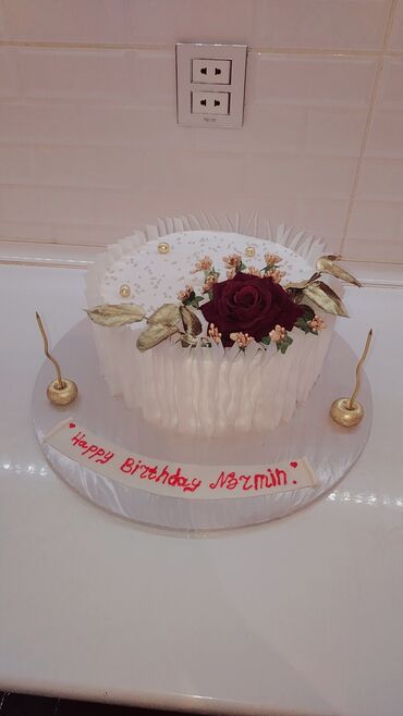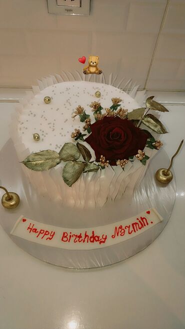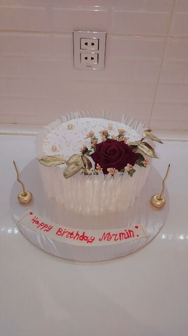 - Yazı: “Happy Birthday Nərmin” – ön hissədə yeməli lövhə üzərində qırmızı rənglə.